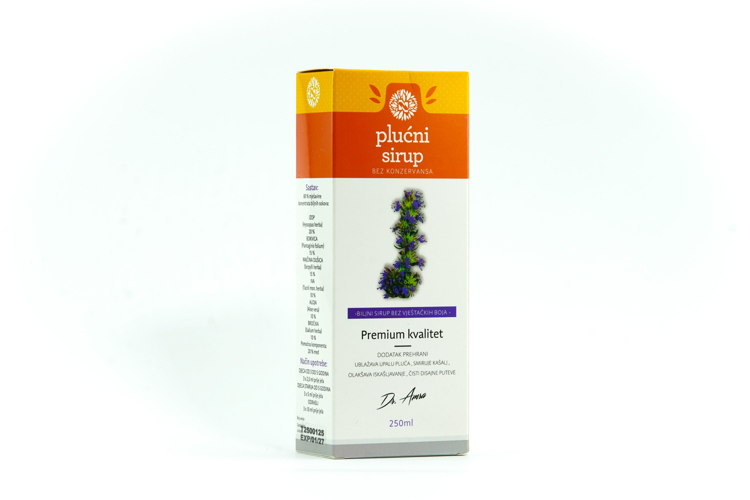 Plućni sirup je dijetetski proizvod i dodatak prehrani, namijenjen djeci i odraslima, koji imaju problema sa disajnim putevima i bronhitisom. Kombinacijom bioaktivnih supstanci odabranih biljaka Plućni sirup djeluje blagotvorno na sluzokožu disajnih organa i:
